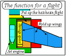 されている。その下には、レントゲン撮影用のカメラ(Pudding-cup)もある。また、背面部には高速飛行用のジェットエンジン(Pet-bottle)が2基、そして折り畳み収納が可能な翼が装備されている。