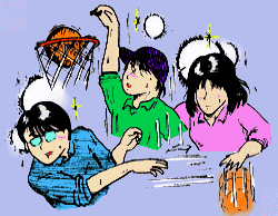 大なわ、人間知恵の輪、そしてバスケットの試合を行いましたが、子どもたちは、なんと言ってもバスケットの試合に期待していたようです。教室で子どもたちと話しているとき、「おうちの人たちに勝てるかな?」と聞くとほとんどの子が、「勝てるんじゃないかな?」という予想でした。ところが始まってみると、大人の体は、予想以上に大きく、完璧なディフェンス。また、○十代とは思えぬほどの機敏な動き、そして、今日であったばかりなのに、「スラムダンク」の漫画のような連係プレー。しかも、試合が始まる前に、私が「子どもたちは本気でやりますよ。」などどよけいな一言を言ったもんだから、試合が進むにつれて、大人軍団は、次第にエキサイトしてきました。