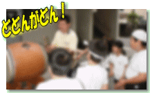 | ○○さんのお父さんに、太鼓のたたき方を教わりました |